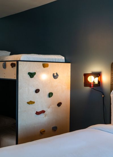 Looking for a family-friendly hotel in Tahoe? Discover our bunk rooms featuring a mini climbing wall, plus fun and games all over the property to keep the whole fam happy. Explore more with us!