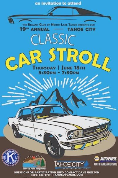The Kiwanis Club of North Lake Tahoe is hosting is 19th Annual Classic Car Show at the Cobble Stone Center in Tahoe City on June 18, 202 from 5:30-7:30 PM.