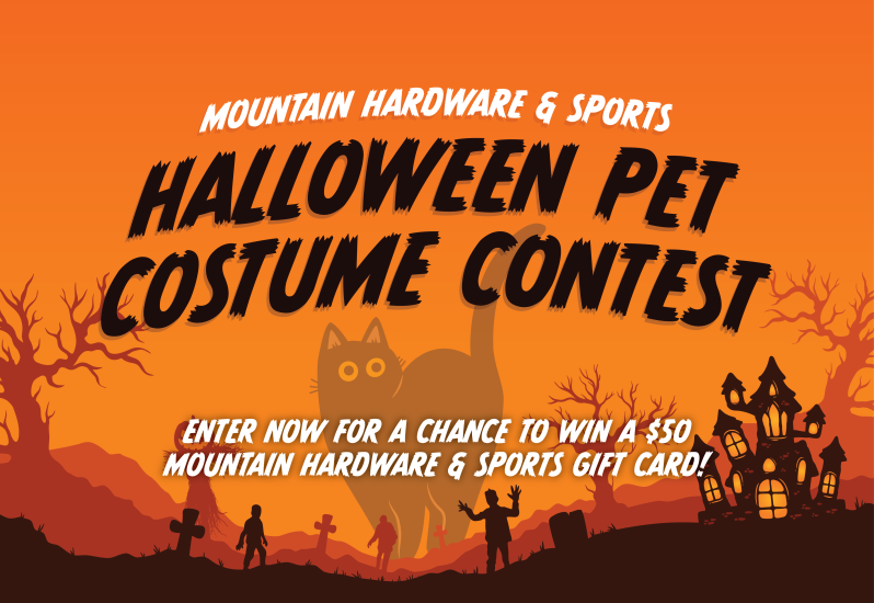 Calling all heinous hounds, fiendish felines, and every creature in between to Mountain Hardware and Sports 2025 Halloween Pet Costume Contest! Dress your pet in their best Halloween costume and submit a photo of them on our website, or bring them in-store for a chance to win a frightfully fun grand prize! Two ways to submit your pet's costume entry: