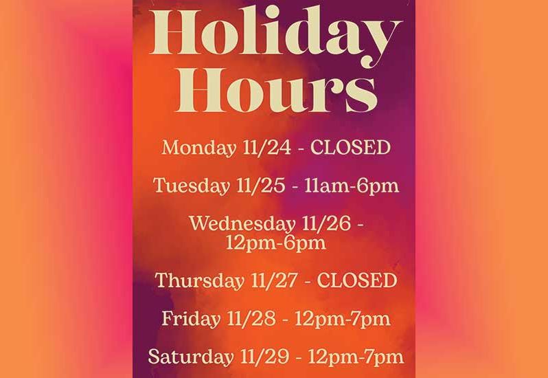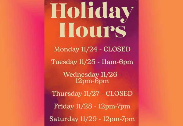 Thanksgiving Hours Update! We will be open on Thursday, November 27th from 7:00 am to 8:00 pm & Friday, November 28th from 8:00 am to Midnight! Stop by to grab last minute libations for the holiday!