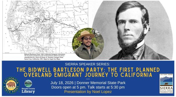 In partnership with California State Parks and the Nevada County Library, the monthly Sierra Speaker Series connects folks to the rich cultural and natural history of the area. Join us at Donner Memorial State Park Visitor Center to learn and engage!