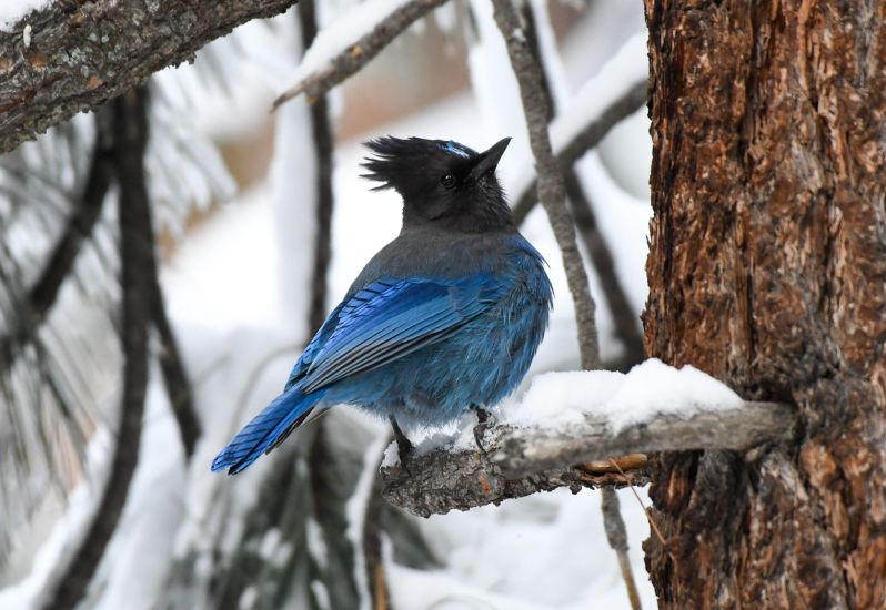 What's all that squawking?There are lots of types of noisy neighbors, both human and wildlife. If it sounds like a bird, it could be a Steller's Jay. Loud, and beautiful, these birds are easy to spot with the naked eye with their rich blue feathers including a black back and head with a diagnostic crest.