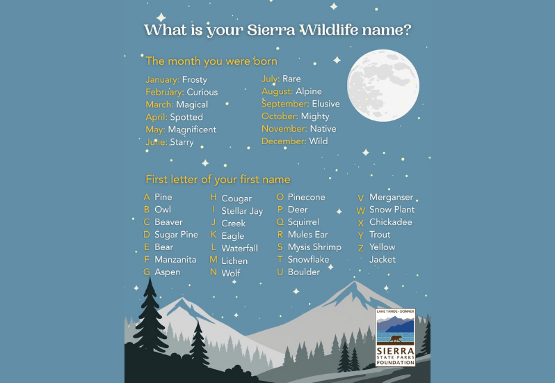 🌲✨ What’s your Sierra Wildlife Name? ✨🌙 It’s time to discover your wild side! Drop your wildlife name in the comments! And don’t forget to tag a friend so they can find theirs too🦉🐻