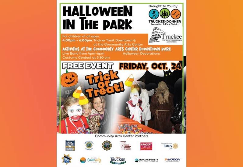 Join us for Halloween in the Park, alongside the trick or treating downtown, on October 24th from 4pm-6pm. We'll be changing it up this year, with trick or treating throughout the Downtown Park and around the art center building with a variety of fun stops for the kids. We will have a costume contest at 5:30pm. There will also be live music playing on the Downtown Stage, curtesy of the Tahoe Truckee School of Music. Please note that there is no parade this year through downtown.